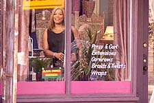 work, she leaves the salon, shampoo girl (Silverstone) in tow, to open
