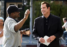 that. Whereas a modest success, it's a little easier to hid Like "Let Her In." JT: Yeah, like that. But of course the good news about that is that allowed me to do something like "Grease," which I wouldn't have if I hadn't done that song Œcause that's what stirred them on saying, "Oh, he can sing, too. Let's pull him into this." Can you talk about wrestling with the Rock on screen? JT: I didn't particularly enjoy doing that. That's not my thing. I'm in character, so it's like Chili has to set who's boss right up. He actually -- Because he immediately perceives that this guy that the Rock plays is gonna be easy to deal with. But he knows that Raji is gonna be a little more difficult. So it's almost a show for Raji more than it is to put the Rock in his -- his character in his place. It's more like, "Okay, look what I did with him," knowing that Raji is probably a coward underneath all of it, that it'll put both of them in their place. But the Rock had to suffer the consequence for the show. Are you going to have a rematch? JT: No, I got him twice in this movie. But it's funny. The thing I love about the character of Chili is that he knows it would be easier to hit Elliot in the head with a bat or knock him down than insult his singing. You see what I mean? It's a bigger hurt to criticize him than it would be to physically hurt him. And Chili just knows that. So that's one of my favorite things about the character is that he would know the difference, that physical pain would mean nothing to these guys, Elliot in particular, but an insult would. I like that a lot. What kind of contemporary music do you listen to? JT: Well, lately bec How was working with Vince Vaughn? JT: Vince hits my funny bone. We laugh as hard off screen as he makes you laugh onscreen. He goes to a zone. And he's a lot like Robin Williams in that way. He has humor in his soul. He cannot not be funny. And he can look at me and I'm gone. And vice versa. I can make him laugh pretty well, too. On "Domestic Disturbance," we gave old Harold a terrible time. Harold is gettin on in his years. And not that he's a curmudgeon, but he's stern in what he wants. And Vince and I would go off on a tangent. He would always blame Vince because he was the younger guy. And I, of course, wouldn't bail Vince out. And then we'd laugh harder because he was stuck with the blame of all of our behavior. But Vince is a fabulous talent and person. I love him, yeah. There are a few differences between the book and the film. One of them is that Vince gets hung out of a window instead of you. Did you have any personal say in that? JT: No, I didn't. That was part of the scenario. Since the novel was written in 1999, what did it take for you to play Chilli Palmer again? JT: The screenplay. Even though the book I liked, it does
