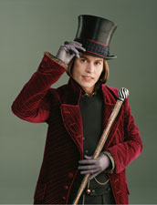 Who was your inspiration for this character? JD: When Tim and I talked about doing it, there was no script at all at the time. There was only the book, which in a lot of ways was a great gift because I was able to just use Raoul Dahl's work for my notes. What I started to see when I was thinking about it in my early research, I had these memories of children show's hosts like when I was a kid; when I was like 5 or 6 years old watching guys like Captain Kangaroo and Mr. Rogers' Neighborhood and local guys like Uncle Al and Mr. Greenjees and I remembered thinking even then it's really how odd it was the way they spoke; that kind of bizarre musical rhythm cadence to their speech pattern and that "Good Morning children, and now today we're going" and I took that speech pattern and made that one of the main ingredients for Wonka and stretched it out a bit and was also thinking about game show hosts that I remembered on television growing up and that kind of perpetual sort of grimace on their face and I kept thinking that it's certainly not like that at home and I hope it's not. (Laughs) You feel like they go on stage and put a mask on and do their thing and take it off. It's almost like a clown or something. Those two things became the basis for this version of Wonka. Can you talk about the Prince Valiant haircut? JD: That is something that came to me early on when I was making little sketches; little drawings of what might be right for the character and that was it. I just did this strange, almost like a Brian Jones kind of bob and super short bangs cause I was thinking about the guy in terms of like, obviously he's lived in this self-induced isolation. He's removed himself from the modern world so therefore his line of reference would be very, very dated. He would be in the back somewhere so thought that maybe he had locked himself in a room with a stack of Herman' Herman records or something. And also that became part of his speech. His speech pattern would be very, very dated. He talks jive to one of the kids. Do you think kids will find Wonka too dark? JD: It's funny because on Wonka, I would never ever because when I'm by myself going through the script, I would mortified if I found myself reading and be the character. I could never forgive myself for that so what I did with Wonka I tested it on my daughter. I tested it on Lily Rose to see if I was going in the right direction. Was it the costume you show her? JD: No, just the sound of his voice cause a lot of times what happens is that you come up with these ideas and you never get to try them really until maybe a read-through of the thing, but even if you are not ready to expose the guy yet, like with the read-through for Wonda, I read like this; just like me. So you don't even know the guy until you have been the guy. So you don't know him until Tim says Action". So what I did with Lily Rose, I just, I was talking to her one day, and many times we play Barbie and she says "Daddy, don't use that voice. Just talk regular." This one particular time, I started to do the Wonka voice and she kind of lit up a little bit and gave me this "Where's that coming from?" and I said that I think I'm on the right track. Do you allow yourself to stay in character? JD: No. I've never bought into that. What kills me is that the image sticks in my head is the idea of a guy who's playing Henry the VIII for example, walking over to the craft services table, the snack table, grabbing a hand full of Fritos instead of some big chicken How did the kids in the film react to you? JD: They were great. They were great about it. So for about the first ten days, you get these kinds of looks (demonstrating a facial expression) and they sort of check each other out. They weren't quite sure how to deal with it and but then they caught on and started to enjoy it. They were great. I remember one scene where I was speaking jive to little Jordan, who played Mike TV and I had this idea that you should speak jive so I came up with thing that "It's in the fridge Daddy-O" and we were doing a rehearsal and I walked up to him and put my hand on him and said "Slide me some skin Daddy-O" and he titled in a backwards angle looking at me saying That's not in the script." (Laughs) It killed me. I just burst with hysteric laughter As an actor, do you appreciate the fact Tim Burton did not use so much CGI but a lot with the set? JD: It makes all the difference in the world. The difference between standing in the room of blue screen; it makes all the difference in the world because everything was there. For me, it's amazing, it's a great gift. Especially for kids. A couple of them had never been on a movie set before; to have all stuff available to you; to see, to touch, in a case of the chocolate river, to actually smell. It smelled bad. After a couple of weeks, it really got funky. Ask Tim about it. He has a great analogy for the smell. I appreciate that old style. That's how movies were done a long time ago and that's how movies should still be done. I also appreciate the fact that there are time when you must use CGI and it works as an affected. (Richard Zanuck walks in and shakes Johnny's hand and gives him a hug) JD: The Legend, Richard Zanuck. Thank You Brother, see you in a bit. He's so cool. He wrote the book on this stuff This was the first film from Plan B, the company that Brad Pitt and Jennifer Aniston own. Did you interact with them at all making this movie? JD: No. Oddly, I wasn't in particularily I knew that Brad Grey was involved I'm so out of it. I don't know what's going on anywhere at anytime. It was a while before I found that Brad Pitt and Jennifer Aniston were part of Plan B. I didn't know; although I met them all individually and they are nice people. Brad, I've known for many years and Brad Grey is a terrific guy. Sharp cookie.
