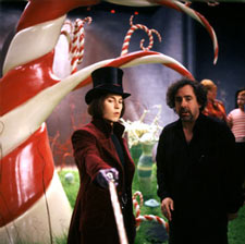 about you doing a new version of th Burton: I didn't feel as daunted by the [first] movie, just because it didn't have quite the same impact for me as other movies. Even though we changed things, the intent for me was to try to be what I felt was more true to the spirit of the book. What did you think of the Gene Wilder portrayal in the original film? Burton: I think he was great. None of us on the production were ever trying to top it. Our goal, except for the little bit of back story, was to try to be a bit more true to the spirit of the book, and instead of having a golden goose and an egg, to have the squirrels and the Nut Room. This film has been in development for many years, but John August is the only credited screenwriter. Was anything kept from the previous incarnations of the movie? Burton: The studio developed it a lot, and they did things like make Charlie more proactive or take out the father figure and make Willy Wonka the father figure. Willy Wonka is not a father figure, I'll tell you right now. There were some good things in some of the other scripts, but we just decided to start fresh so with John, we just said let's go to the book. The book is the book, so obviously, all the stuff was in there to some degree. Did you deliberately try to design the look of the movie so that it would be different from the first movie or from anything else you've done? Burton: It's all organic. I never think about it. Like I said, the blueprint of the book was there, but the great thing about [Dahl's] writing is that he leaves a lot open for interpretation, so we had complete freedom to devise what each of the rooms looked like, the Bucket House, the town, and all of that. We didn't feel like we were constrained by anything, and it had quite an experimental feel as we were making it to me, and that was fun. I enjoyed not quite knowing exactly what kind of plants we were going to make or if we were going to find the right consistency for the chocolate, so it didn't look like a brown water. The beauty of film is that it's very collaborative, so with the designers, the costume designers, the actors, it all kind of comes together. It's a big dysfunctional family. Was there ever any doubt in your mind that Johnny Depp was your Willy Wonka? Burton: No, but it was the first time that I didn't have to talk anybody into it. Before I could even open my mouth, it's like the studio goes "What about Johnny Depp?" And I go, "Well, okay if you're going to force him on me." (laughs) You've worked with Johnny so much now that you two have become intrinsically linked. What would you consider his main appeal as an actor? Burton: Well, it's because he's a character actor in a leading man's body. He's ready to do anything. He's probably more like Lon Chaney than he is a leading man. He wants to transform, and he likes to be different characters in different movies. He's an actor that you would think about, perhaps even for female roles. He can do it all. He's very versatile that way. What is it about your relationship that keeps you two coming back to each other? Burton: Well, I mean I love working with him, but I don't think either he or I would just make a movie just to make a movie together. I think we're friends enough that if the part was right and he was into it, of course we'd always [do it]. How did the two of you come up with Wonka's look and mannerisms? Burton: You know, Johnny and I have this process where we kind of speak in the abstract to each other, and yet, can still somehow understand each other. But we never like to use one reference. I mean, I never say to Johnny, make it like this. I remember we did have conversations, and one of the things we did talk about was that in our childhood, in every city, there's some weird children's show host that's got a weird name and usually has a funny haircut. Then, as you got older and think back on him, you go like "That guy was f'in weird, man! What was that guy all about?" It's like Captain Kangaroo and Mr. GreenJeansŠwho are these people? Each city had their own kind regional one that kind of spooked you out a little bit, so we were kind of using that sort of reference point. I think the great thing about Dahl's writing is that he left that character kind of ambiguous. There's sort of a mysterious nature to that character that even though we gave him a little bit of a back story that was not in the book, still that weird, mysterious nature of the character felt important. So was being able to add that back story what made this project attractive? Burton: We just felt that if you have an eccentric character--and it works fine in the book--I just felt in the movie, that if you got this guy acting that strange, you kind you some traumatic experiences in your life. Are you concerned that Wonka might come across as being slightly psychotic? Burton: No, I just think he comes across as emotionally repressed and stunted. When people get traumatized, they just sort of shut down. Related to that, I've met people that are kind of geniuses in one area, but are completely deficient in every other area of their life. The mixture of those things was what I sort of thought him as. Some people have already been making a connection between Willy Wonka inviting kids into his factory with recent allegations about a certain pop star and his California ranch. Are you worried people might have that perception? Burton: See, here's the big difference. Michael Jackson likes children. Willy Wonka can't stand them. (laughter) To me, that's a huge difference in the whole persona thing. Honestly, the truth is I never made that connection for the very reason I just mentioned. We never talked about that at all. I guess you could say that they both have problems, but we all have problems. It says more about the people making that reference, because I can't think of any larger difference. It's almost like night and day. Like some of your other films, Willy Wonka has father issues. 
