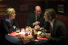 fall flat, if it doesn't carr Your character in Labute's "In The Company of Men" has been so strongly associated with Aaron Eckhart that you must have had to deal with that in terms of other films you've made, yet you've done very different roles. AE: That's just been the strongest one. That was the most visceral character I've ever played. It was so out of the box. Nobody knew who I was; they had no expectations of the performance or the film. So that was seared into people's minds. I think the role that people most remember me from is "Erin Brockovich." And thank God for that because it's been difficult out there. You like those insidious characters. AE: Well, I really like working for Neil. I don't think everyone can pull it off material like this, and not everybody wants to pull it off. I find, as exhilarating as it is for the audience to watch it, its even that much more exhilarating to play it. And when you get it right, or your director comes out and says, or if Christopher Buckley sees a scene and goes, "That's exactly how I wrote it." That's something special. There's an energy, a spark, you know. When you're talking to your kid, or a cancer kid, boy, when he's sitting next to you and you're saying your words, and you reach over to him and go "You did a great job kid." You just have [to make that feel real.] (Laughter) You feel like you're really on the edge there. AE: I came up with that and that's the fun stuff, I guess, because it is dangerous. I noticed also, not only did you have to think of comedy, but it also has to make you think. Look at that moment when Nick tells the kid, and tells the senator [from Vermont, the home of cheese], "More people die of cholesterol." AE: Right, it is informative. So I was thinking, I'm like, "Who thinks of dying from cheese?" AE: Right cheese, that's a very funny scene. But also thought-provoking. AE: Yes, and true. There are other things besides cancer killing us.In New York City, we ingest about a pack of cigarettes a day. So, we're all sick here. It's a smart movie, and that's why, if you are putting it with Neil's stuff, or whatever, because it falls into the realm of smart comedy. Jason was just telling me that he had been screening it around for universities and they're getting a really good response. This movie can live and die in the universities. And with those kind of people; it's going to do really well in New York because it challenges people. It also, the great thing about the movie is, in my opinion, it doesn't take sides. It makes fun of everybody, everybody's in there. You have my character, Nick Naylor, and you have his ex-wife [Kim Dickens] and you have the journalist [Katie Holmes] and they're all kind of protagonist/antagonist. So, you walk out of there picking who you like and then going on. And I think that's smart of Jason not to have chosen sides. As an actor, you have a forum to say whatever you want and know that it can go out there and be misinterpreted. AE: Yes, and you have to be careful. In this movie, what Jason says can be different things. Christopher Buckley [the novelist] could say this is a political movie, but I personally think this movie is a comedy. I look at it only as a comedy. I was thinking about it today, in preparation for this and I thought to myself, "This was never a political movie for me. This was never about tobacco. It was about this character that I would love to play, who really is spinning things and loves to talk and gets himself in these crazy situations and gets himself out." That's fun to play as an actor. Now I hope that there is talk, political talk, about this movie and talk about tobacco and all that sort of stuff because that means people are going to go see it. What was it like to play a father? AE: I like working with kids. I like the fact that I'm making aconscious effort in my lobbyist career to work and be a father or family figure because I like what the father can teach the son. I like the mirroring image. I like the problems that arise in family circumstances. I like the conflicts and the tension and also the resolution of family. I think that the audiences like to see that. The scene where we are doing our homework together--I'm doing my homework and he's doing his--I just got choked up. It's a scene that I like because he's mirroring me and I'm mirroring him. We're both affecting each other; we both have something to say. You know he's going to grow up to be a little mini me. And I think that's important for audiences to see. How that relationship can work. Do you have kids of your own? AE: I don't have children. I would like to have children. I'm working on a movie now, and there's a nine-year-old girl. Right now it's called "The Untitled Scott Hicks Project." It's a remake of "Mostly Martha," a German film about good cooking. It stars Catherine Zeta-Jones and me; that's a dynamic I like a lot. Kids are so sweet. They're much more intelligent. Probably you guys know more than me. They're so smart, you know, and really can take care of themselves. And you know, Cameron [Bright, his son] would teach me, because he is from Canada. Like the director [laughter]. AE: Like everybody. I'm given citizenship. I've done so many movies there. But just, you know, they can teach you as an actor a lot of things too. So it's good, I like it; I want to do more of it. How is it working with JK Simmons--one of my favorite actors. AE: The guy's solid as a rock. He was so funny all the time, you know, when he says that "Come on people." It was perfect. Jason was like, 'I got this guy JK.' He walked in and it was "boom," nailed it every time, funny, had a great take on it; I loved him. What was it like wo AE: Calm. Was there a lot of improvisation before the shoot or during different takes? AE: No, there wasn't, not that I couldn't have. I do my own form of a little like shake and waddle and I get my energy up. We rehearsed it and Cameron and I also with Sam Elliott who was awesome in t